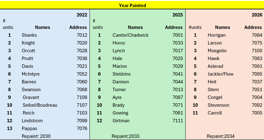 Attached is the schedule for the most recent painting cycle.